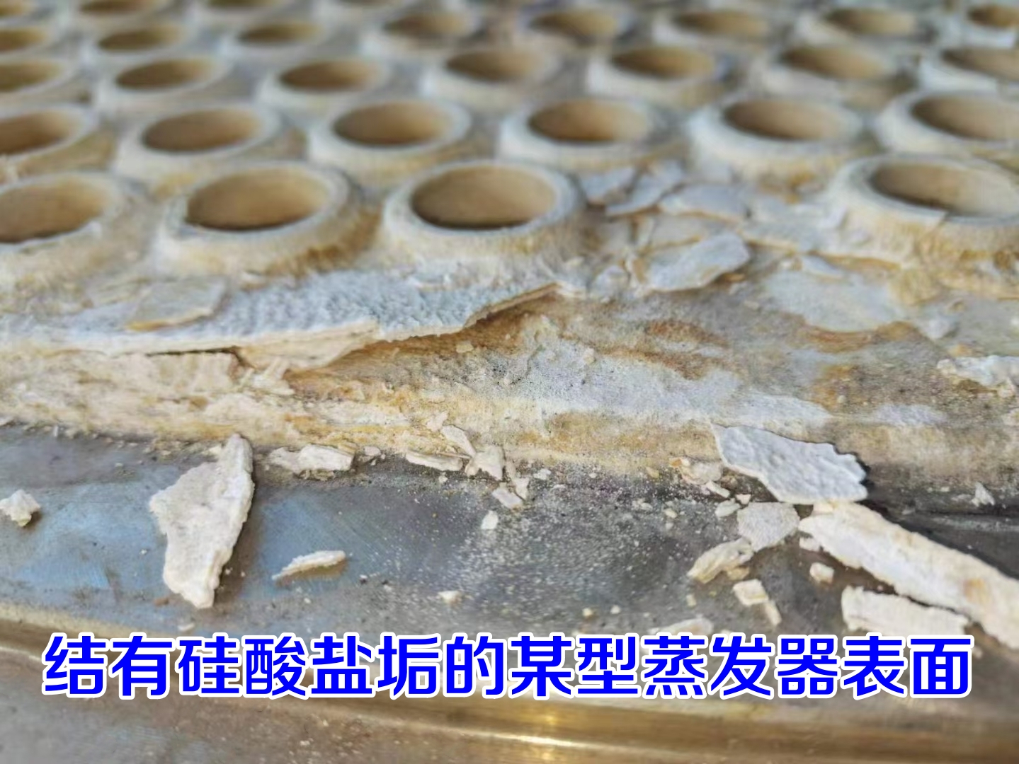 硅酸盐垢是工业常见垢型之一,多见于电厂涡轮机、各式锅炉、MVR蒸发器、换热器、冷凝器、循环水系统等设备表面,但它又不同于一般的常见工业垢型,其外观多呈白色、米白色或浅灰色,组分复杂者也可能呈棕褐色,通常表现出质地坚硬、酸碱难溶等特点。